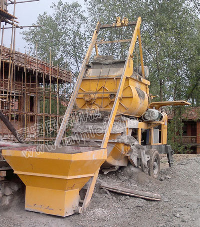 3.攪拌好的混凝土自動(dòng)反轉(zhuǎn)出料到泵送料斗沿管道輸送到地點(diǎn)。